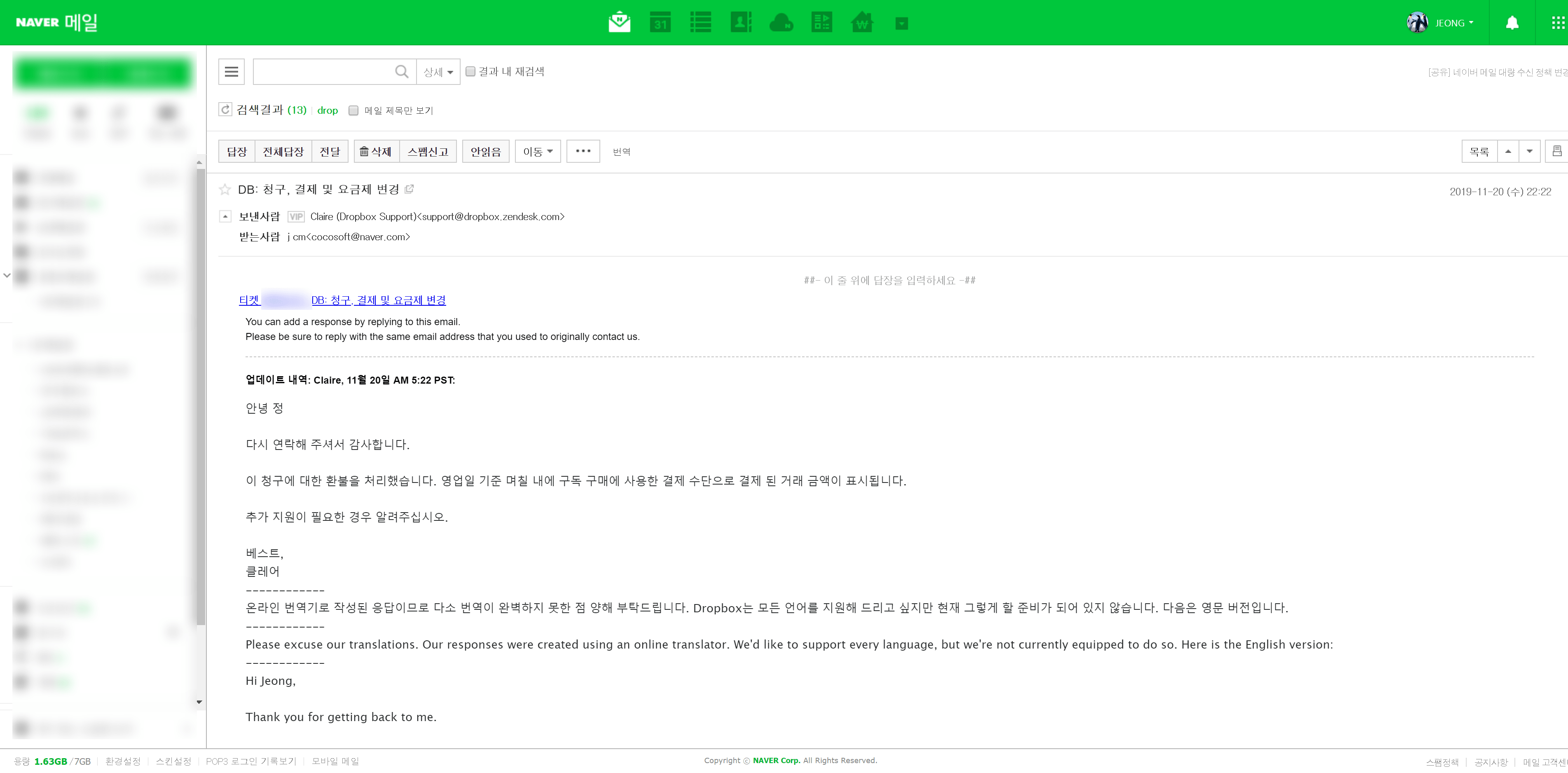우선 확인해본결과, dropbox 에서 결제가 되었다고 했는데... 이름만 dropbox인듯.. 컴퓨터관련업체라는데