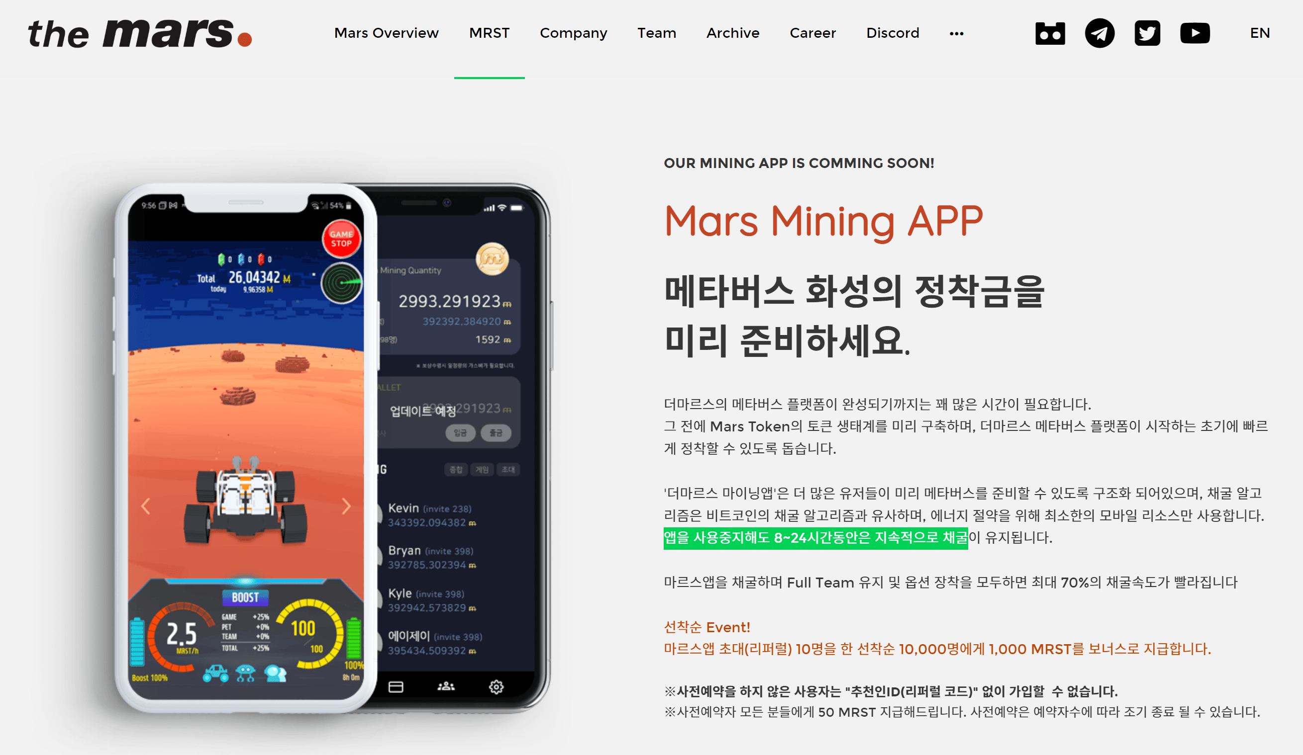 오늘은 P2E 무료 마이닝 채굴 앱인 더마르스 코인 마이닝 채굴 방법에 대해서 알아보겠습니다.
