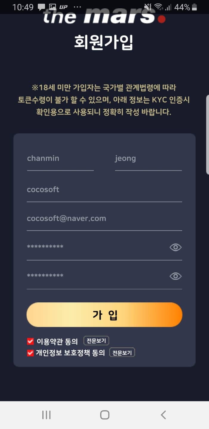 앱을 다운로드후 설치 후 회원가입을 해야하는데, 현재 사전예약을 하지 않았으면, 추천인ID가 필요합니다.