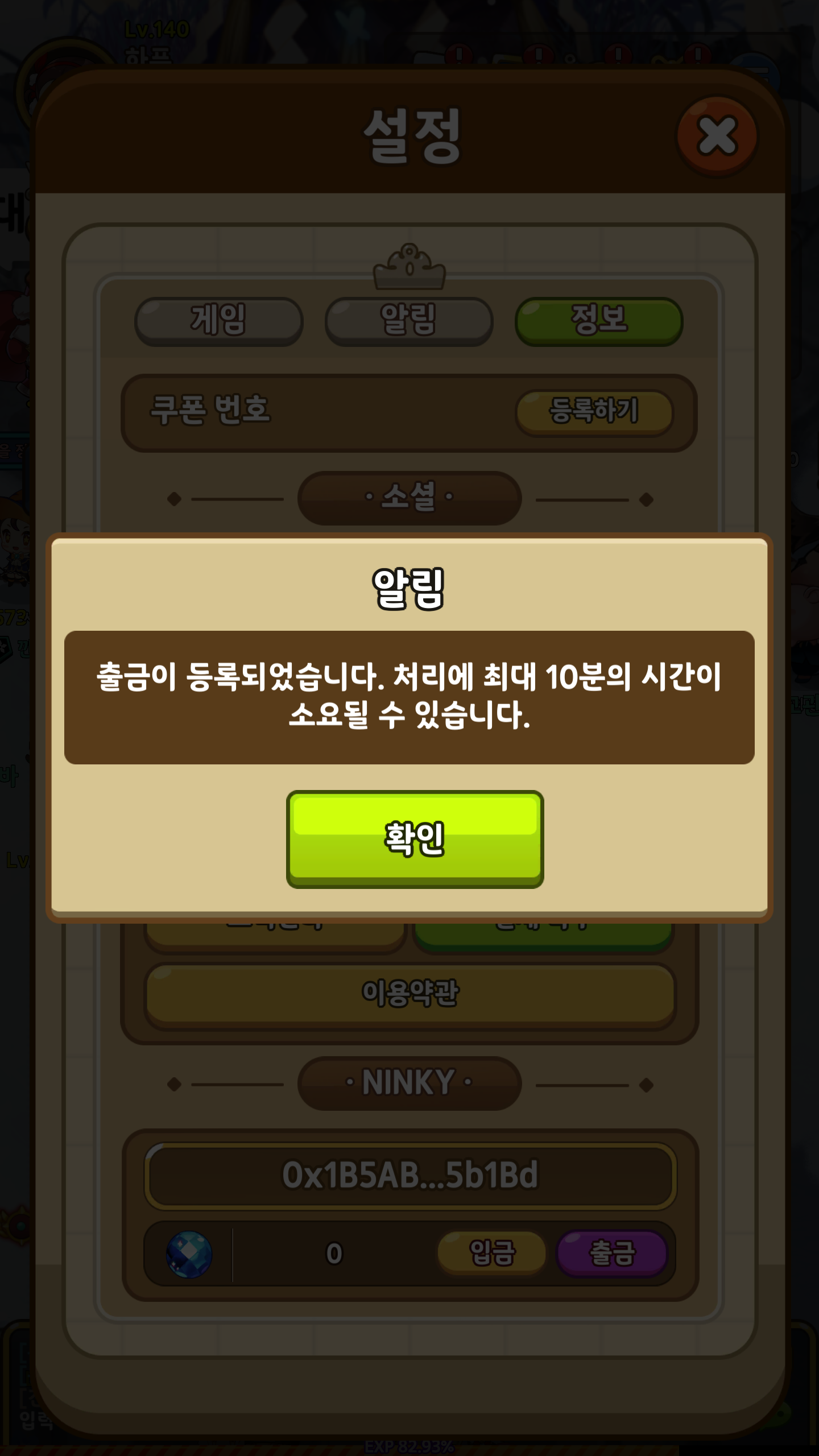초반에 가스비가 필요하다는 것은 처음 알았네요.. 다들 가스비 입금을 성공해서 ㅠ_ㅜ 어렵고 복잡하지만 닌키코인 출금을 잘 사용하시길 바라겠습니다.
