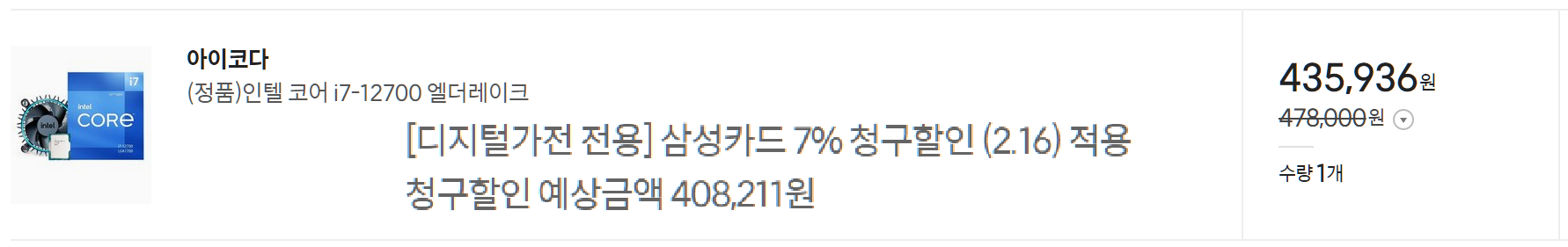1. CPU - 인텔 12세대 (엘더레이크) i7-12700