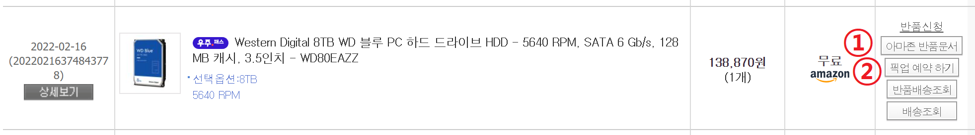 우선 저는 11마존에서 WD 8TB 블루 HDD 하드디스크를 구매했습니다.