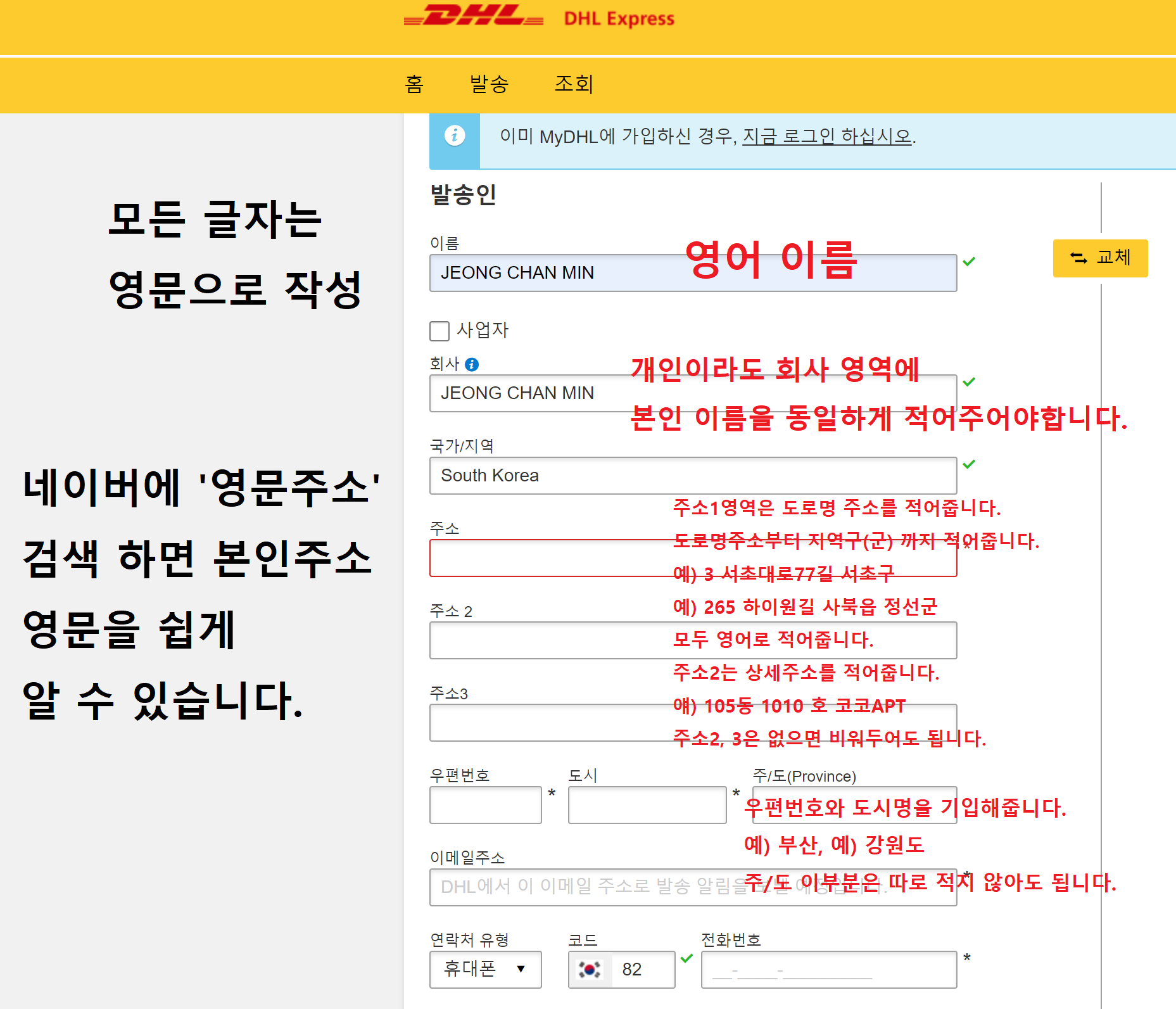 DHL 익스프레스 픽업 예약, 발송, 요금 조회, 배송 조회하기