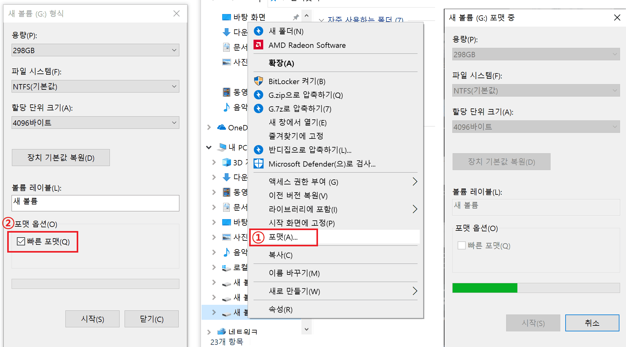 보통 포맷하는 방식은 보통 하이 레벨 포맷 / 퀵 포맷(빠른 포맷) / 로우 레벨 포맷으로 나누어집니다.