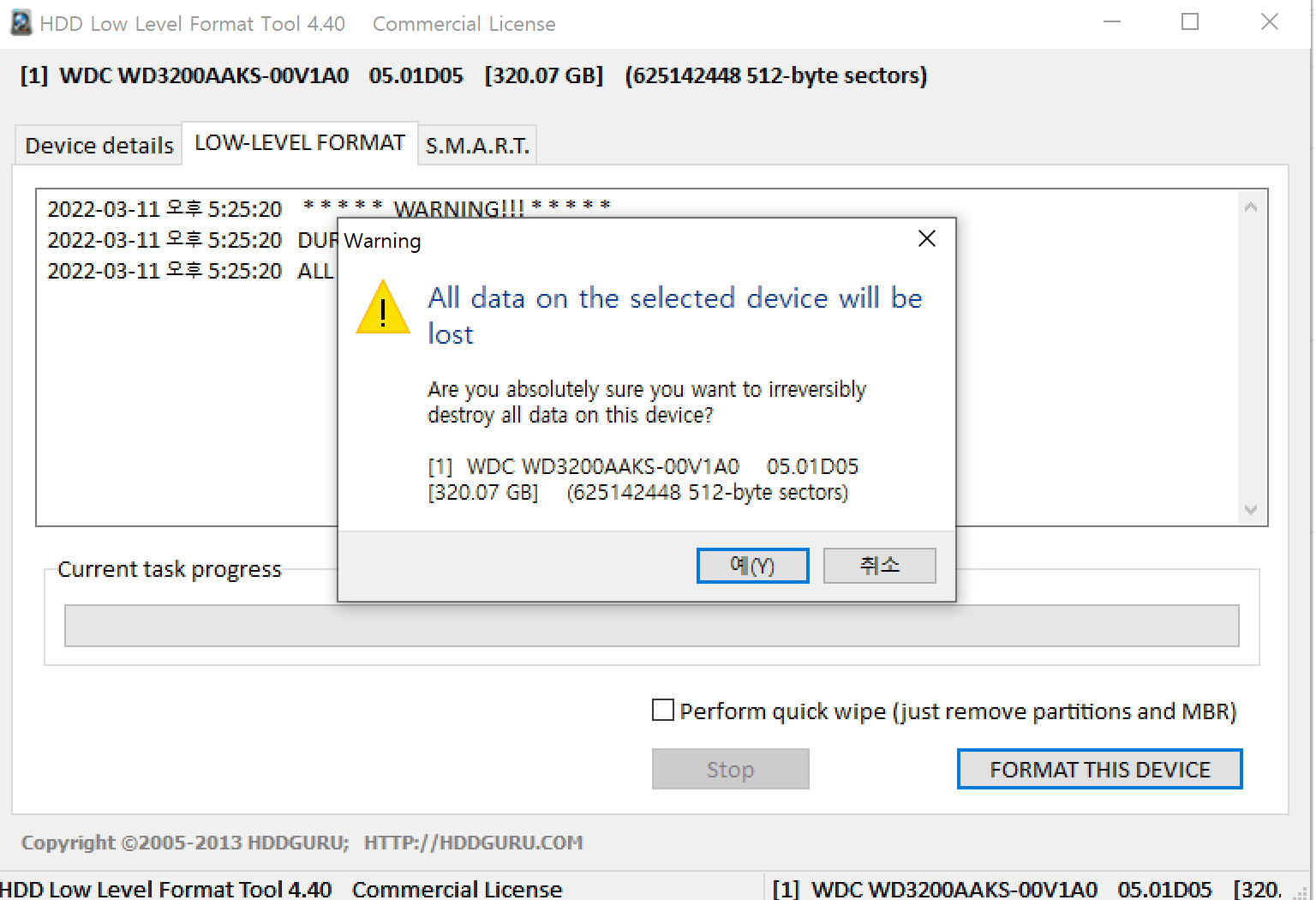 HDD LLF 로우 레벨 포맷 툴 HDD LLF Low Level Format Tool입니다.
