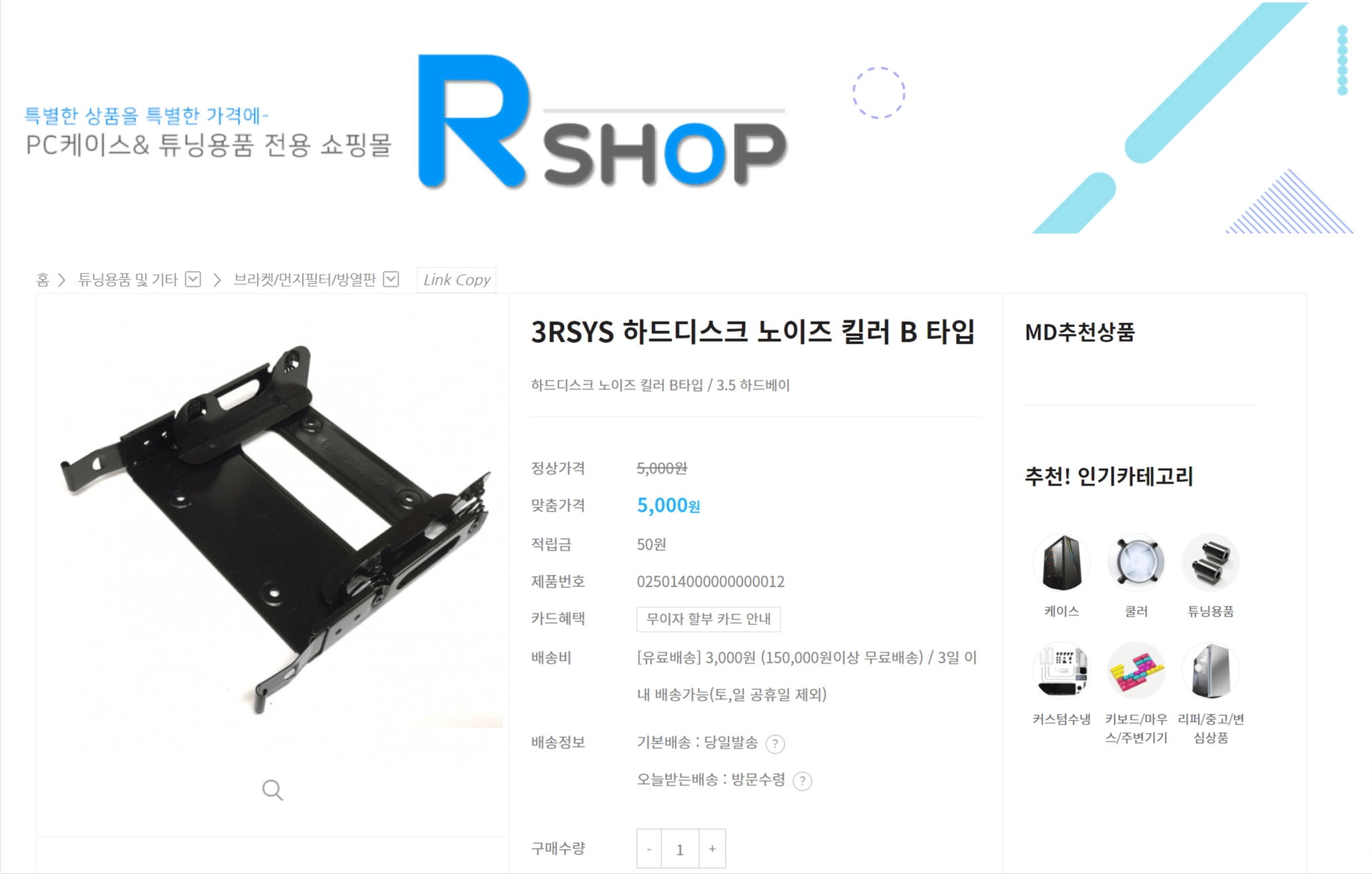 HDD 브라켓은 종류와 가격이 다양한데, 3RSYS 하드디스크 노이즈 킬러 B 타입 브라켓을 사용하기로 했습니다.