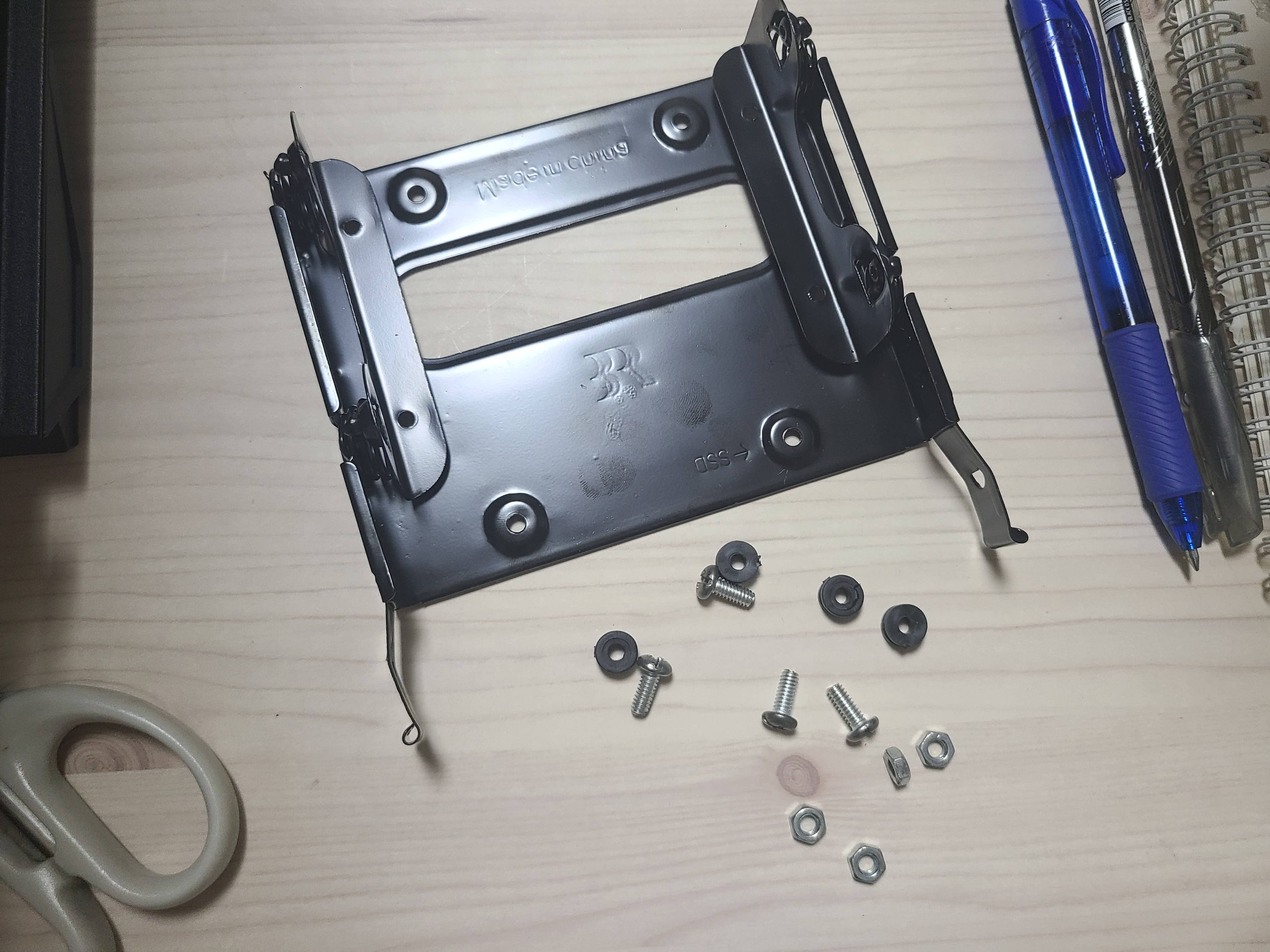 우선 안쪽 2.5인치/SSD 설치 구멍에 나사 4개와 고무패킹을 꼽아서 준비를 합니다. 중요한 작업입니다. 미리 꼽아야지 장착이 가능합니다.