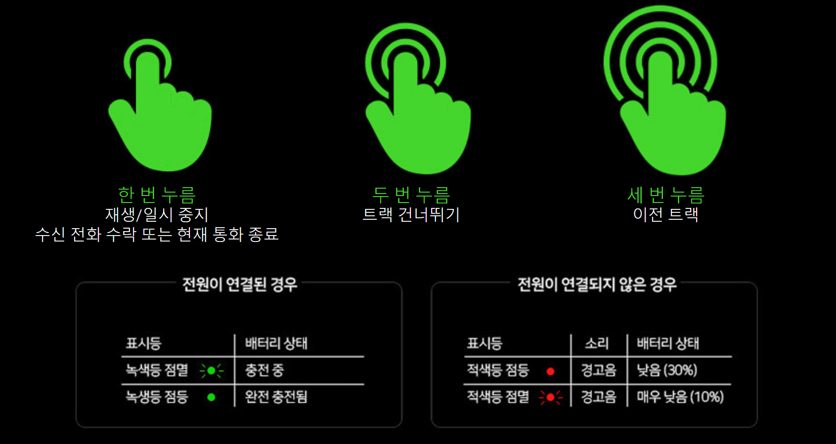 전원 버튼으로 한 번 / 두 번 / 세 번 누르는 것은 위와 같은 음악 재생이 됩니다.