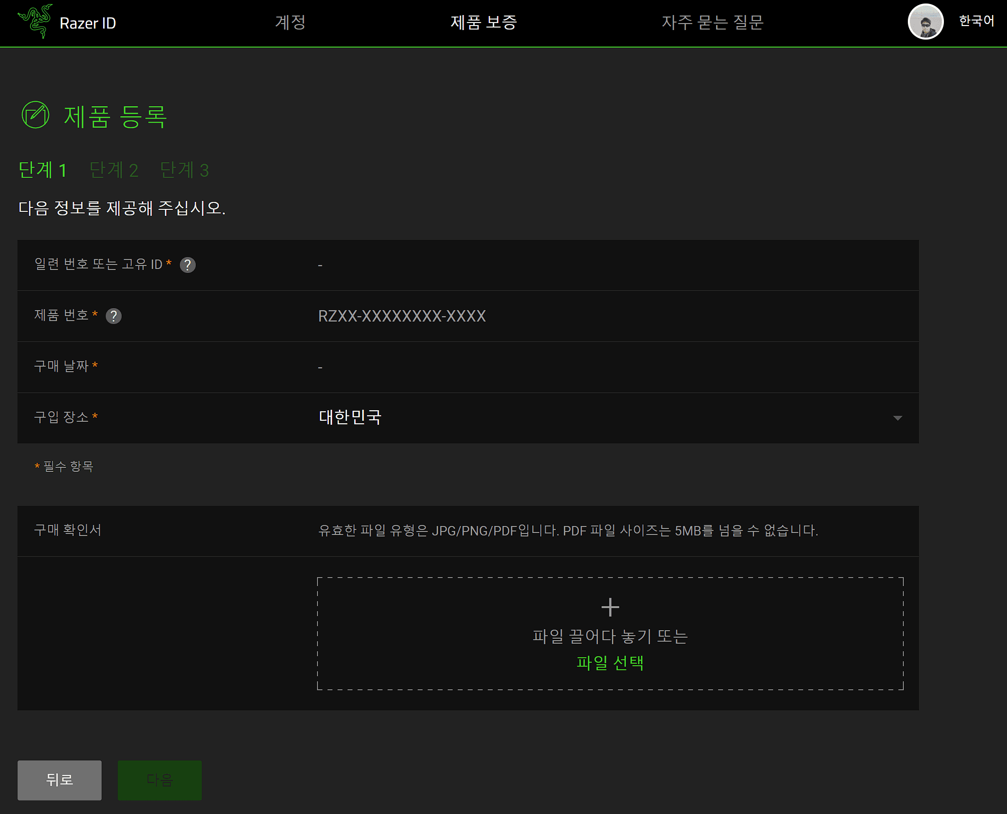 레이저 7.1 서라운드 사운드 활성화 코드를 받기 위해선 우선 레이저 공식 사이트에서 제품 등록을 해주어야 합니다.