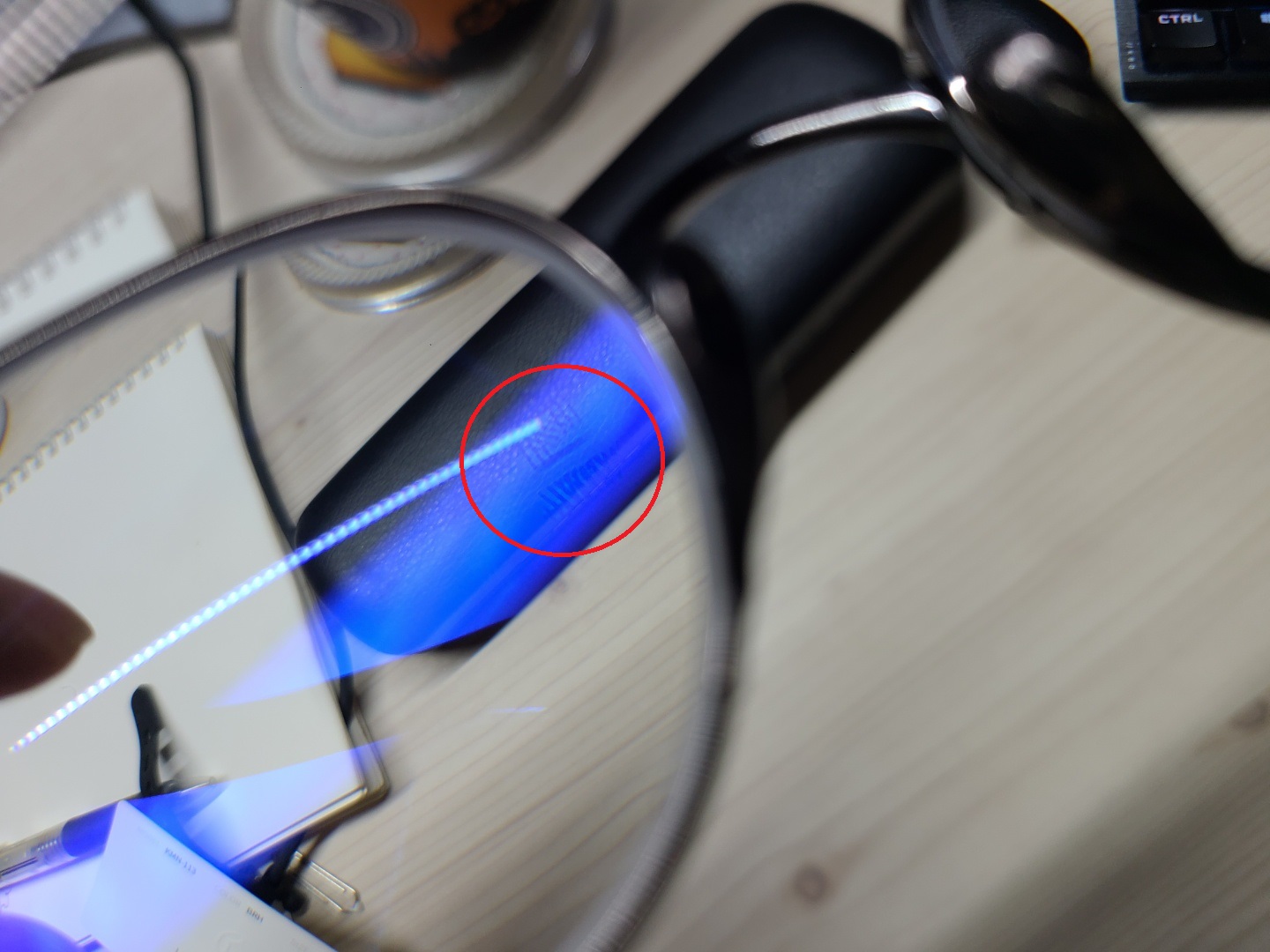 해당 마크는 정말 잘 보이지 않습니다. 불빛으로 비춘 다음 각도를 아주 미세하게 조절해가면 보이게 됩니다.