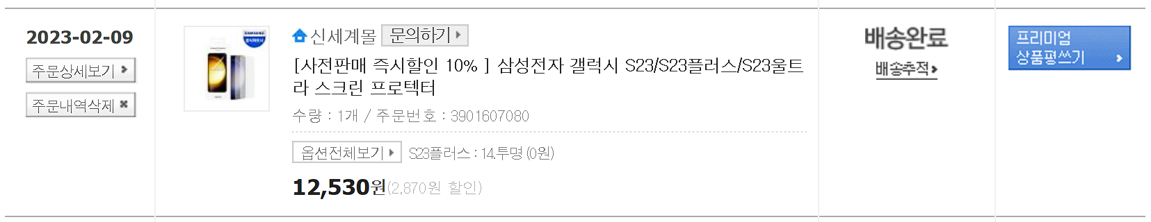 저는 갤럭시 S23 플러스 모델을 구매했었고, 삼성전자 공식 스크린 프로텍터 보호필름을 부착했습니다.