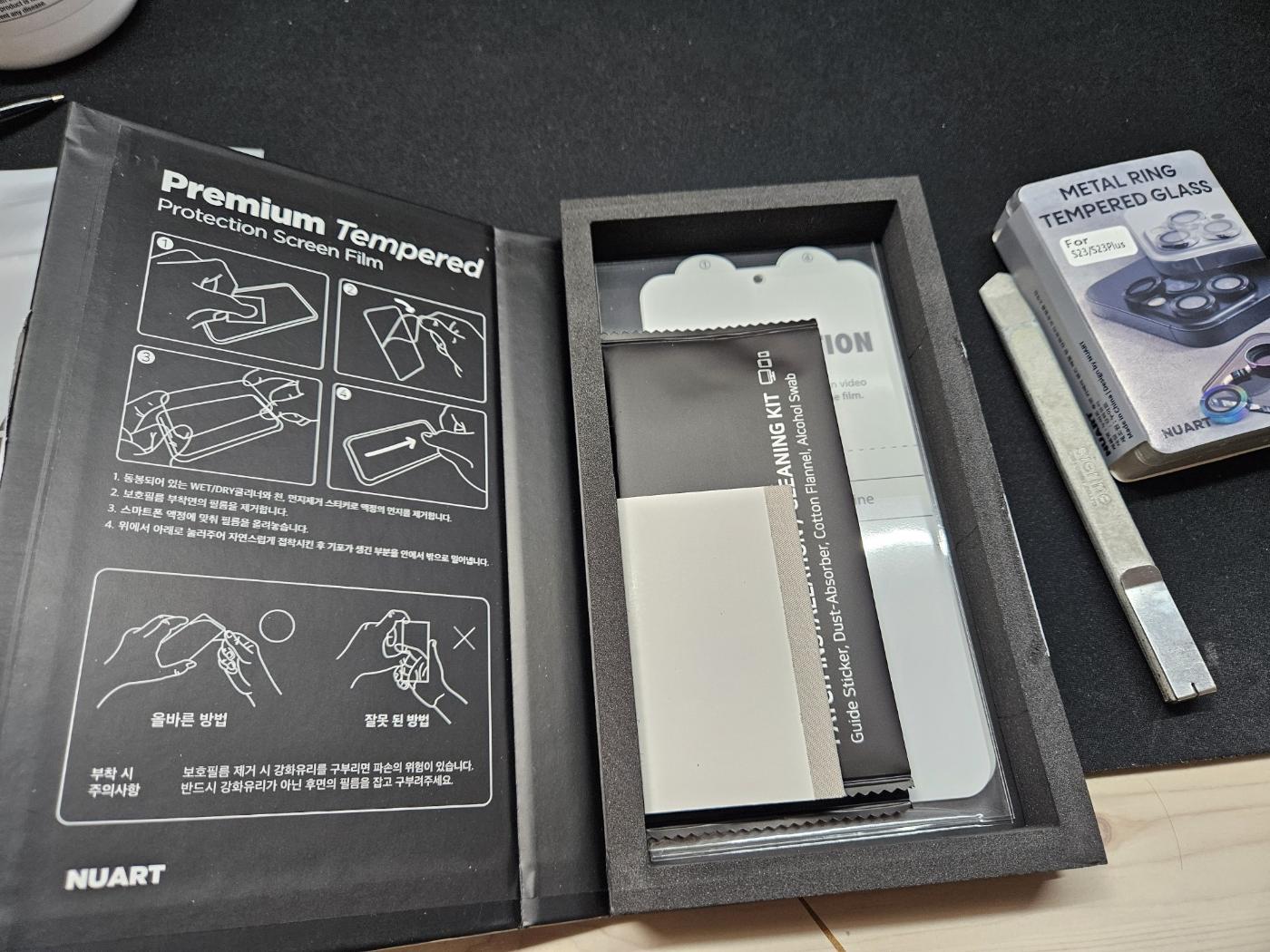 오른쪽에 삼성공식 보호필름은 반정도로만 접어질 만큼 매우 하드 했는데, 누아트는 매우 부드러운데, 터치감은 탄탄해서 =너무 만족스럽네요.