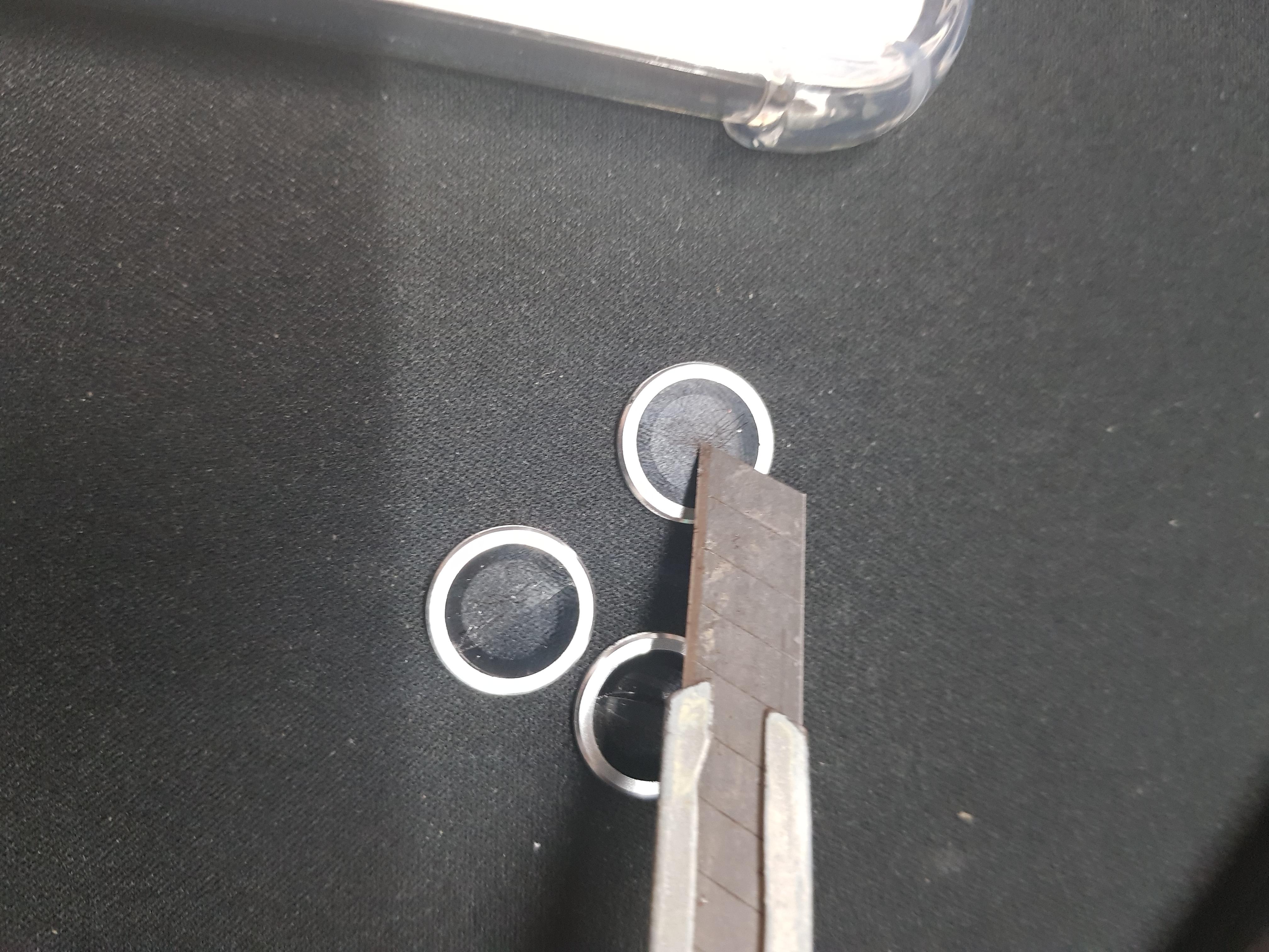 여분의 렌즈를 커터칼로 긁어봤는데 진짜 힘을 줘서 긁어도 흠집도 안 납니다. 가위로 렌즈를 수차례 찍어봤는데, 책상에 꽝소리가 날 정도로 찍어야지 유리가 깨지더라고요!!