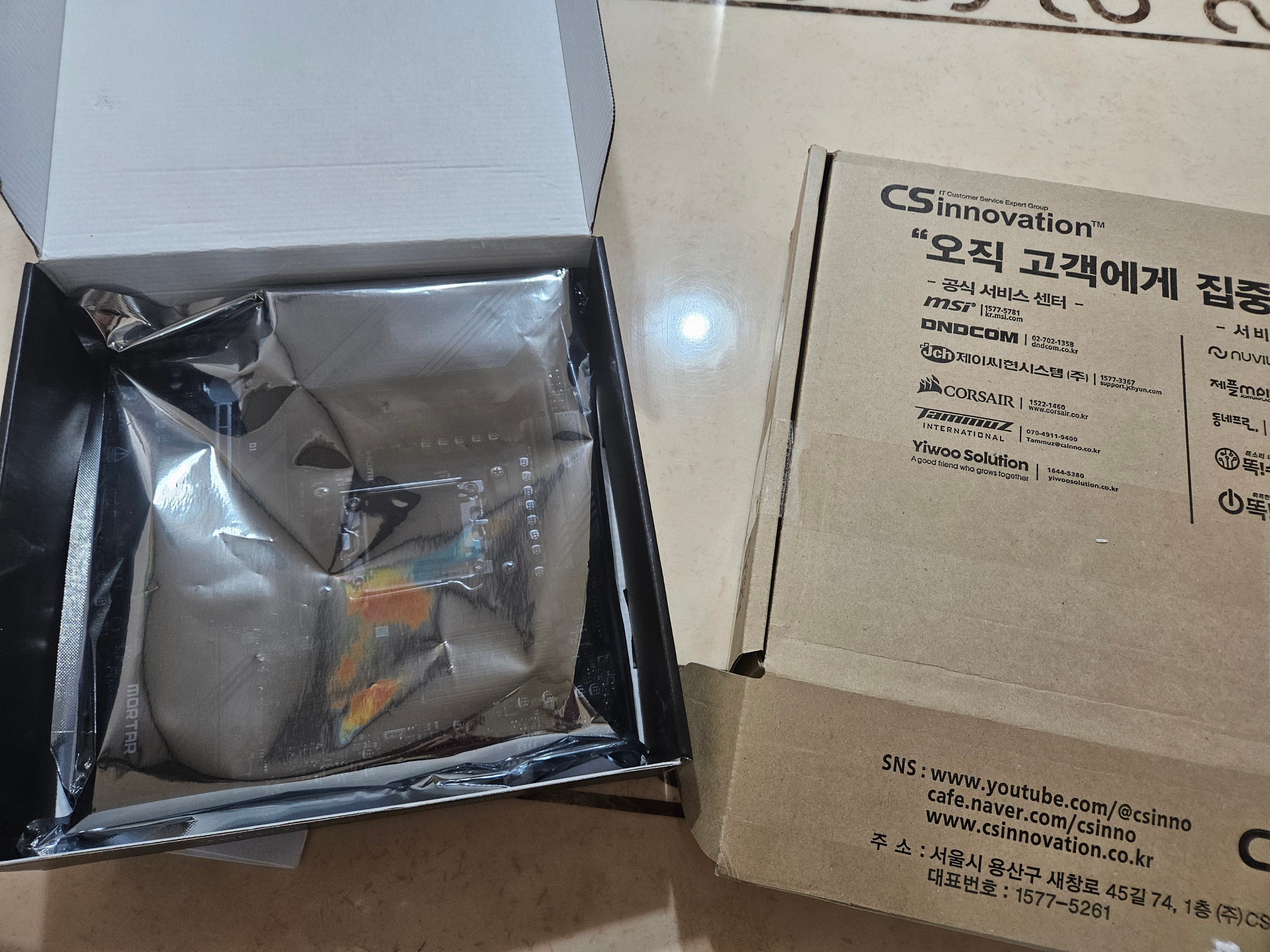 고민 끝에 메인보드를 먼저 A/S 보내기로 했습니다. 인터넷을 검색해 보니 메인보드는 초기 불량률이 높고, 특히 MSI 보드는 10일 이후에는 새 제품 교환이 어렵다는 정보를 알게 되었습니다. 제 경우 실사용은 2일밖에 되지 않았지만, 설 연휴 9일과 CJ대한통운의 택배 지연 때문에 2월 10일에야 MSI 이노베이션에 택배가 도착했습니다.